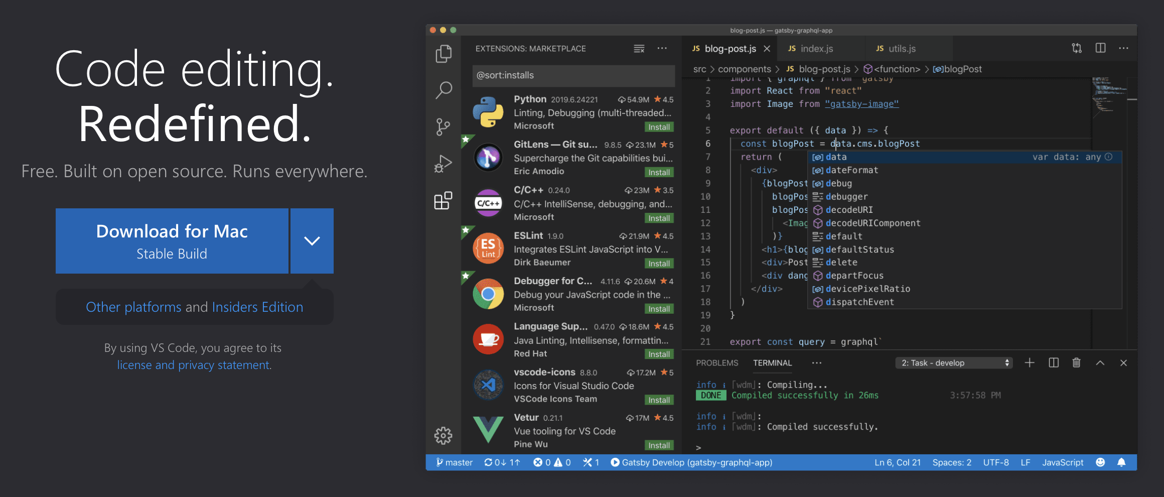 아래의 사이트를 통해 VSCode를 설치한다. 본인은 맥을 사용중.