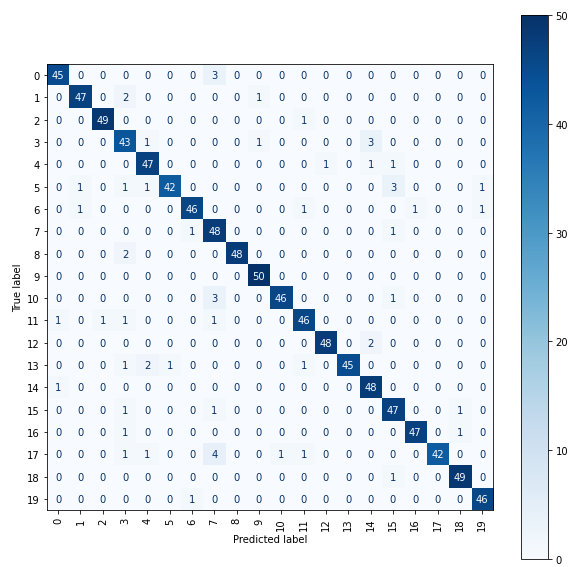 testdata set 폴더에 저장된 데이터를 이용해 평가를 진행한 결과 정확도 93%로 일단 심슨을 보지 않은 저보다는 훨씬 더 똑똑한 캐릭터 인식 모델이 된 것을 볼 수 있었습니다. confusion matrix도 확인을 해보겠습니다.