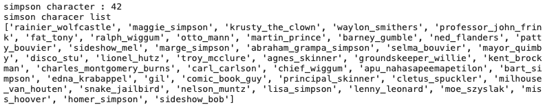 전체 캐릭터는 42명이지만 데이터 셋의 분포를 보면 약간의 불균형과 단편성 캐릭터의 데이터도 섞여있는 것 같습니다. 가장 데이터가 많은 호머 심슨의 데이터의 약 10%인 200개를 기준으로 200개 미만의 훈련 데이터를 가지고 있는 데이터는 버리도록 하겠습니다.